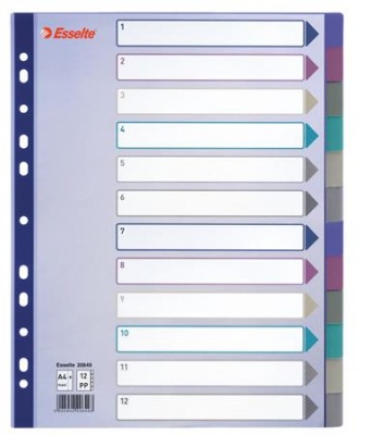 KezdőlapIrodaszerekIratrendezés, archiválásElválasztólapokRegiszter, műanyag, A4 Maxi, 12 részes, ESSELTE, színes
