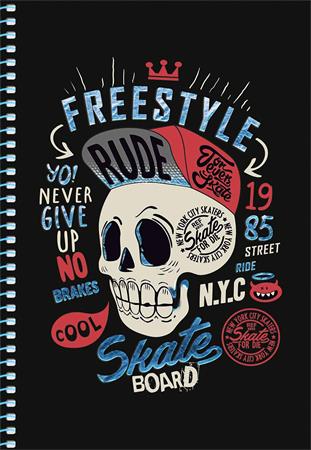 Spirálfüzet, A5, kockás, 80 lap, SHKOLYARYK " Skate board", vegyes